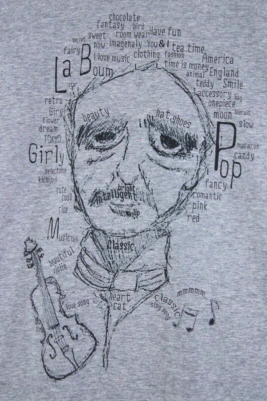 頭にたくさん文字を抱えた音楽家のTシャツ